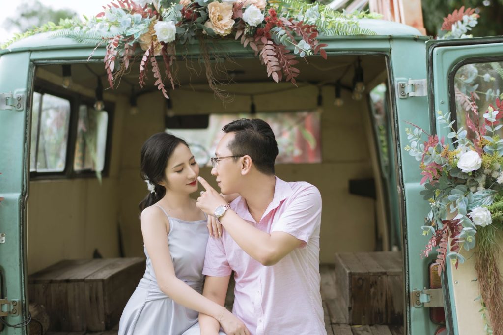 Studio hay phim trường chụp ảnh cưới thường hạn chế về không gian, vậy nên ý tưởng nói chuyện cùng người thương khi chụp hình cưới trong studio giúp cặp đôi thêm tự nhiên, thân thuộc. Bạn sẽ ngạc nhiên bởi độ chân thực khi nhận những shoot hình cưới này đấy.