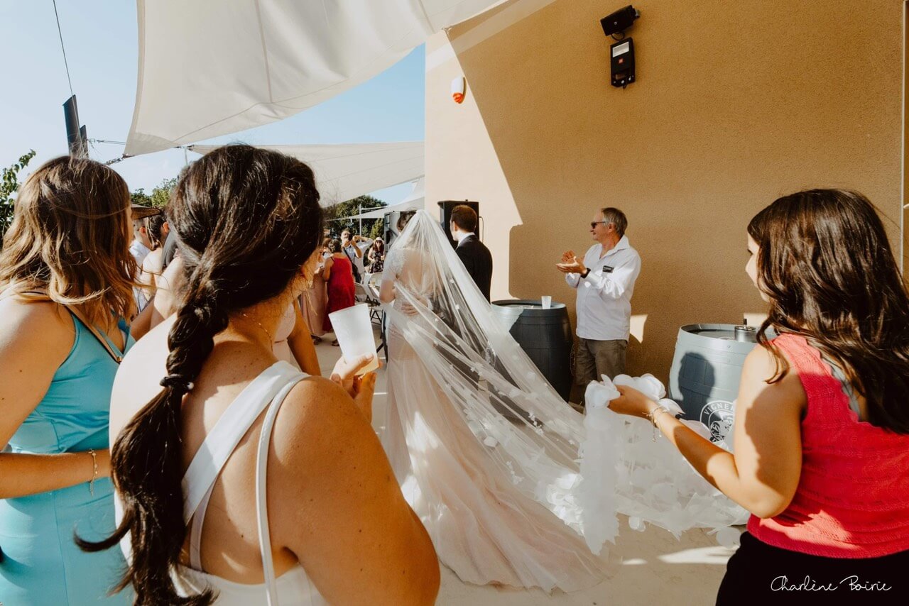 Điểm nhấn gây ấn tượng nhất chính là phần vai váy được tạo tác từ lớp lưới trong suốt. Chỉ một chút khéo léo đã mang lại hiệu ứng hở vai đầy gợi cảm nhưng vẫn tinh tế, khiến Thu Hồ vừa quyến rũ, vừa giữ được sự thanh lịch. Đó là sự cân bằng hiếm có giữa hiện đại và cổ điển, giữa khát khao nổi bật và mong muốn tinh giản, đúng như những gì cô dâu đã gửi gắm trong giấc mơ váy cưới của mình.