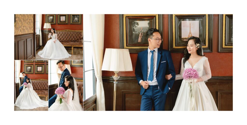 Phong cách: Chụp ảnh cưới ngoại cảnh vùng sông nước ven sông Sài Gòn. Ngoài ra còn có một số góc chụp lâu đài phong cách cổ điển phương Tây.