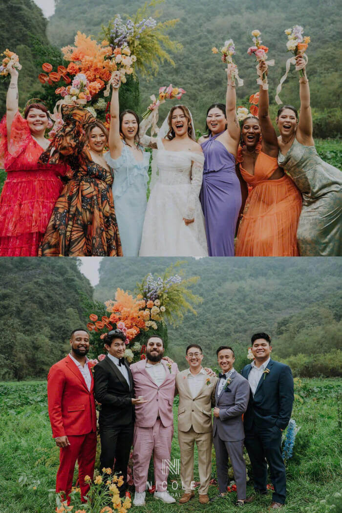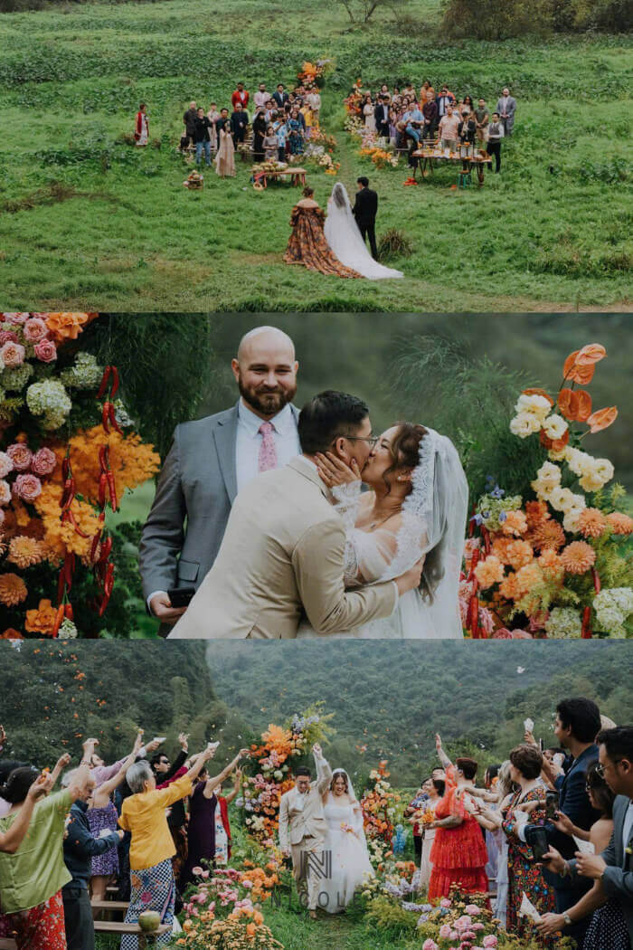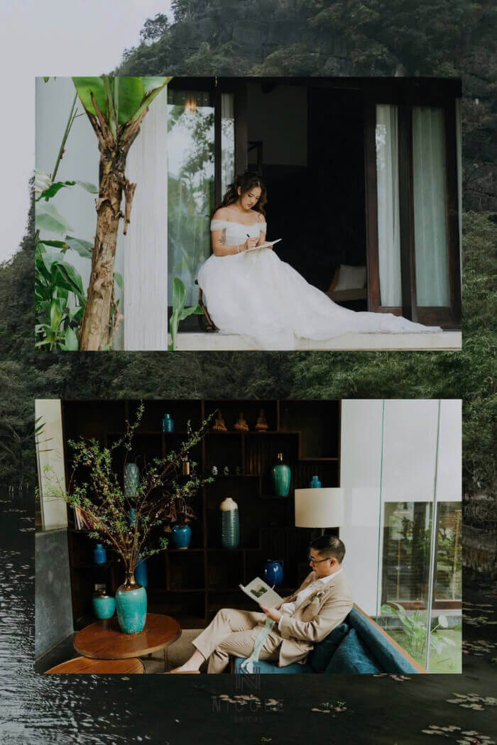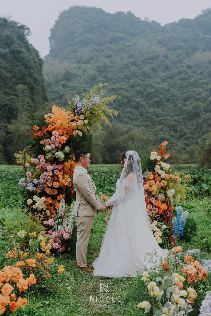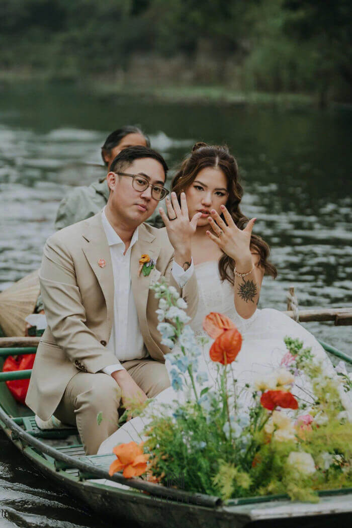 Giữa khung cảnh hùng vĩ của núi rừng Ninh Bình, với thung lũng xanh mướt và dòng sông uốn lượn, Catherine và Johnny đã chọn elopement, một lễ cưới nhỏ gọn nhưng đầy tình cảm. Ngày hôm ấy, khi ánh nắng buổi sớm len qua rặng núi, không gian trở nên thiêng liêng hơn bao giờ hết. Bạn bè và gia đình thân thiết quây quần, chứng kiến đôi trẻ trao nhau lời thề nguyện. Không pháo hoa rực rỡ, không sân khấu xa hoa, chỉ có tiếng cười, những cánh hoa nhiệt đới cùng trái tim yêu thương dành trọn cho nhau.