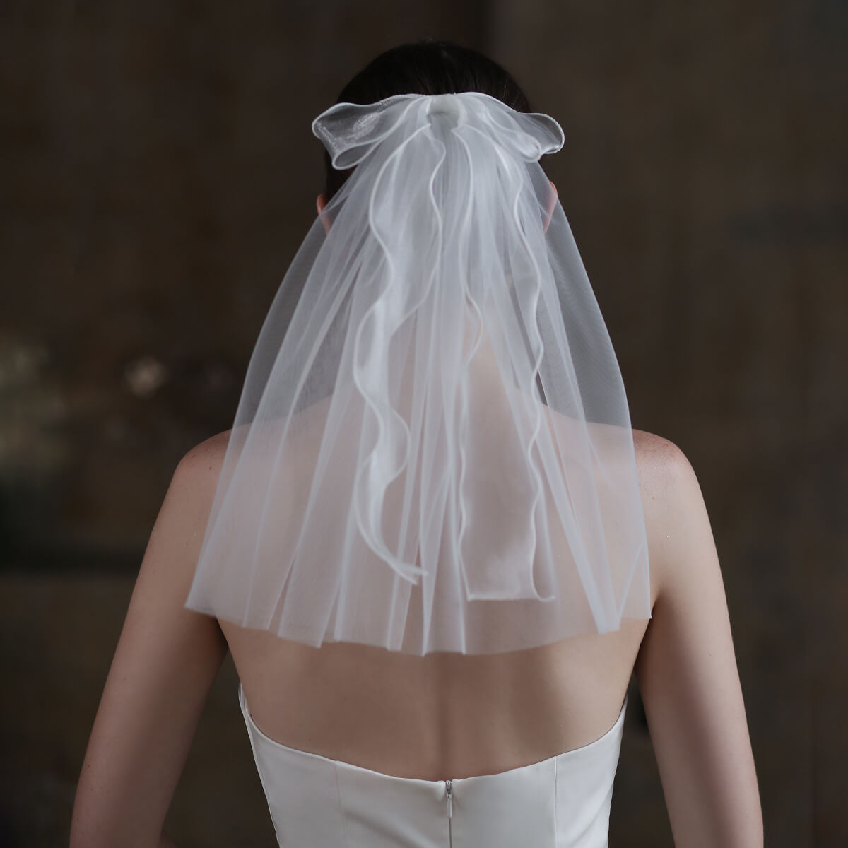 - Suitable for outdoor weddings: Use satin ribbon, short veils and small flowers to create a light, stylish shoulder-length veil.