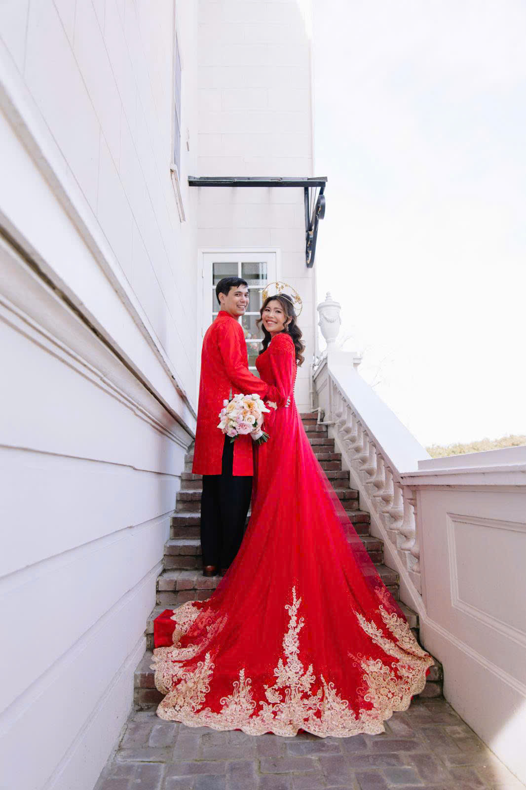 On her special day, bride Jenny Nguyen chose two designs that beautifully reflect both tradition and modern elegance. From the traditional red áo dài adorned with delicate embroidery, celebrating the graceful beauty of Vietnamese culture, to a refined wedding gown with a soft and elegant silhouette that highlights her radiant presence throughout the celebration.
