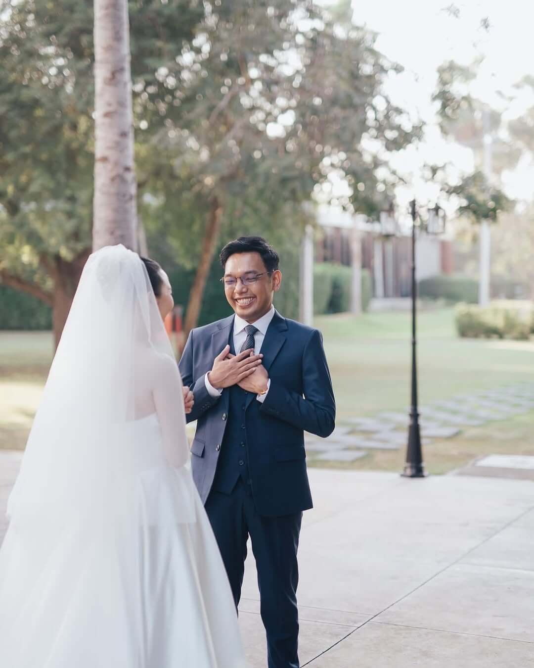 Một trong những giây phút khiến chúng mình xúc động nhất, chính là khoảnh khắc First Look. Khi Emerald nhẹ nhàng bước đến từ phía sau, chú rể quay người lại, đôi mắt rạng rỡ và nụ cười không thể giấu nổi hạnh phúc. Đó là cái nhìn đầu tiên mà anh dành cho nàng khi người mà anh yêu thương nhất nay đã chính thức trở thành vợ, trong chính chiếc váy cưới trong mơ mà cả hai đã cùng mong chờ.