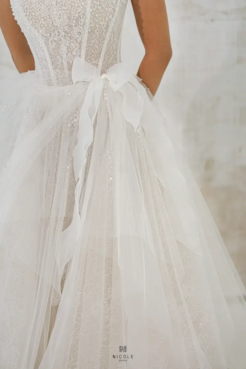 With Cina, Nicole Bridal wishes to convey that elegance sometimes comes from the lightest, most delicate things.
