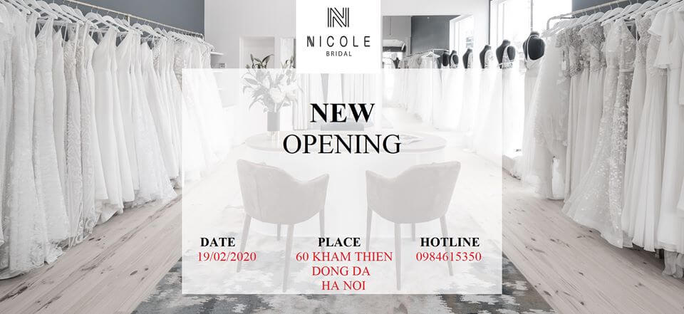 Nicole Bridal Hanoi will officially operate at the address: 60 Kham Thien, Dong Da, Hanoi / February 19, 2020.