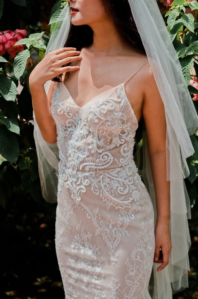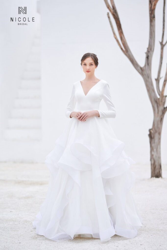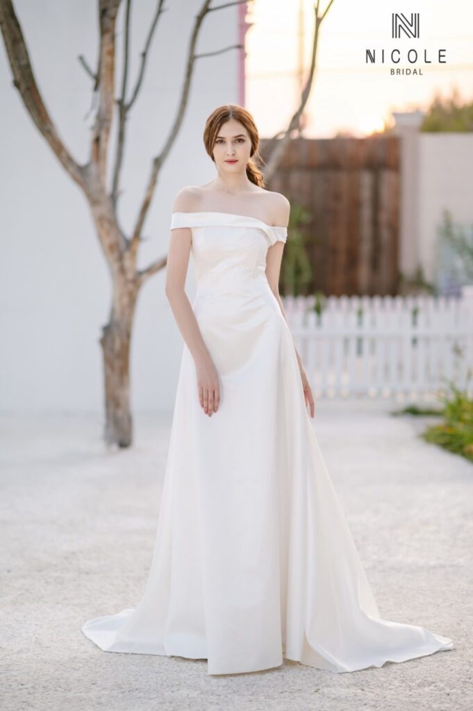 Bringing a simple classic wedding dress to your outdoor celebration that will have been countlessly chosen by many brides worldwide.
