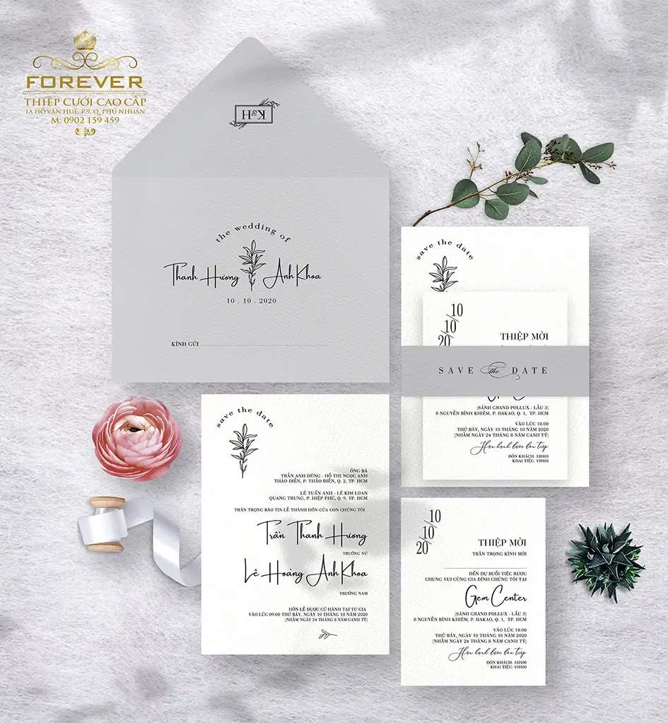 Là một trong những đơn vị thiệp cưới hàng đầu tại Sài Gòn với đa dạng sự lựa chọn từ tinh tế, sang trong đến cách điệu và cá nhân hóa. Một bộ thiệp cưới đẹp không chỉ thể hiện sự trân trọng dành cho các vị khách mời, mà nó còn là phát ngôn cho gu thẩm mỹ và cá tính của các đôi uyên ương. Có lẽ bởi thế mà thiệp cưới Forever được nhiều cặp đôi tìm đến và trang trọng in tên mình trên đó. Bạn có thể xem thêm thông tin về thiệp cưới cao cấp Forever tại https://www.facebook.com/thiepcuoicaocapforever/