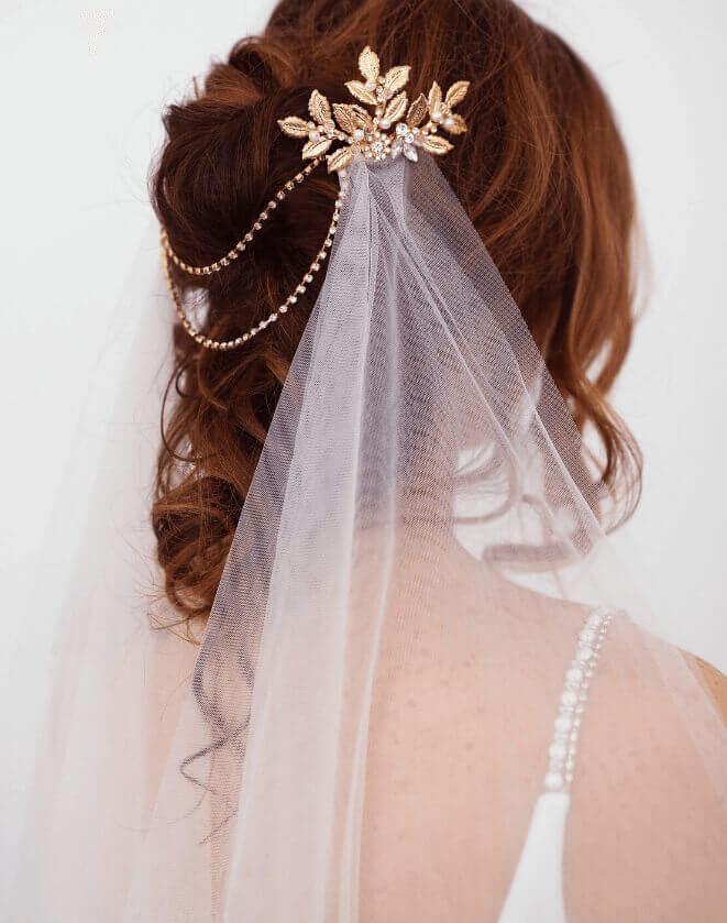 Dành cho những cô dâu yêu sự gọn gàng và muốn khoe trọn phần váy phía sau, veil cô dâu ngắn mang đến cảm giác tươi trẻ, nhẹ nhàng và dễ di chuyển. Dáng lúp ngang vai hoặc chấm lưng, được may bằng vải voan siêu mỏng, điểm xuyết ren họa tiết tinh tế sẽ là lựa chọn lý tưởng cho những buổi lễ ngoài trời, trong rừng hoặc bãi biển.