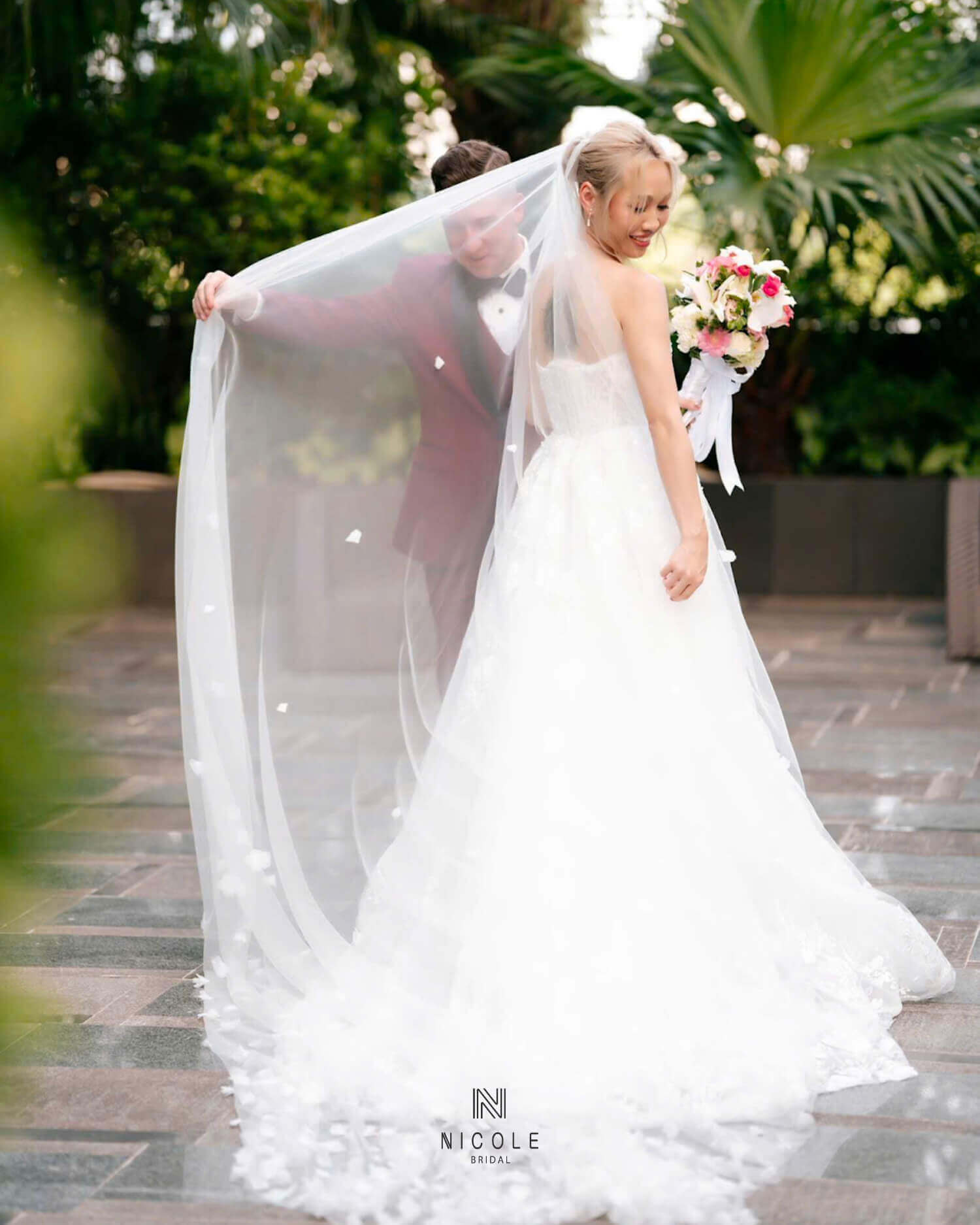 Một trong những yếu tố giúp các cô dâu Nicole Bridal luôn tỏa sáng chính là chọn lúp cưới thiết kế riêng (custom veil). Khi lúp cưới được thiết kế đồng bộ với váy về chất liệu, màu sắc và phong cách, tổng thể trang phục sẽ đạt đến sự cân bằng hoàn hảo.