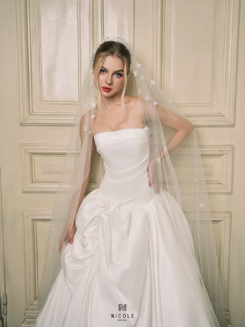Tại Nicole Bridal, các mẫu veil cưới hoa luôn được thiết kế hài hòa giữa xu hướng hiện đại và vẻ đẹp cổ điển. Bạn có thể lựa chọn từ những mẫu veil cưới hoa nhẹ nhàng, hoa ren điểm xuyết cho đến những thiết kế cầu kỳ hơn với đính kết hoa nổi bật, phù hợp với mọi phong cách váy cưới và không gian lễ cưới.