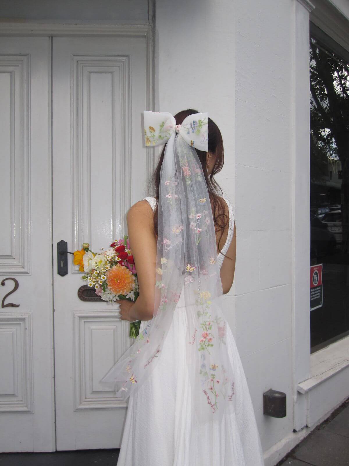 Thứ hai, veil cưới nơ rất dễ phối hợp với nhiều kiểu váy khác nhau. Với váy chữ A thanh lịch, lúp tạo thêm nét duyên dáng. Với váy công chúa xoè phồng, lúp nơ lại tôn lên sự ngọt ngào. Và ngay cả khi cô dâu chọn váy lụa tối giản, chiếc lúp vẫn trở thành chi tiết hoàn hảo để làm nổi bật tổng thể.