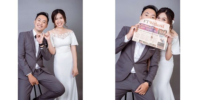 Một trong những tư thế tạo dáng chụp hình cổ điển nhưng không lỗi thời đó là chụp ảnh cùng sách báo. Cô dâu chú rể có thể thỏa thích tạo dáng bên những quyển sách, trang báo để làm nổi bật lên cảm xúc, hạnh phúc của mình trong mọi khoảnh khắc.