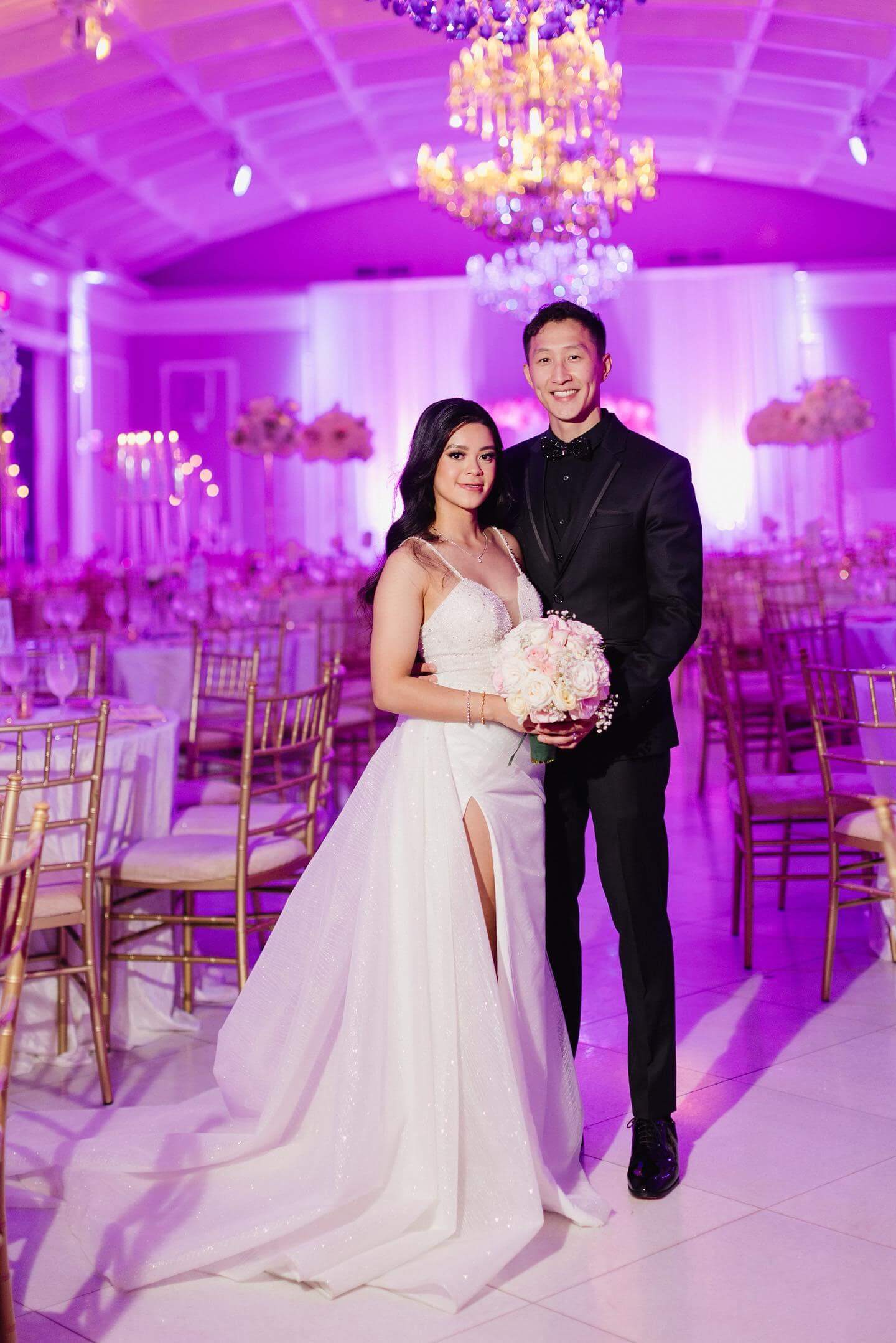 Trong khoảnh khắc ánh đèn vàng rực rỡ đổ xuống không gian tiệc cưới, Tina Le bước vào như một vệt sáng tinh khôi, mềm mại nhưng đầy nội lực. Thiết kế váy cưới được may đo riêng cho Tina là sự kết hợp hài hòa giữa vẻ đẹp phóng khoáng hiện đại và tinh thần lộng lẫy tối giản đậm dấu ấn cá tính thời trang rất riêng của nàng dâu.